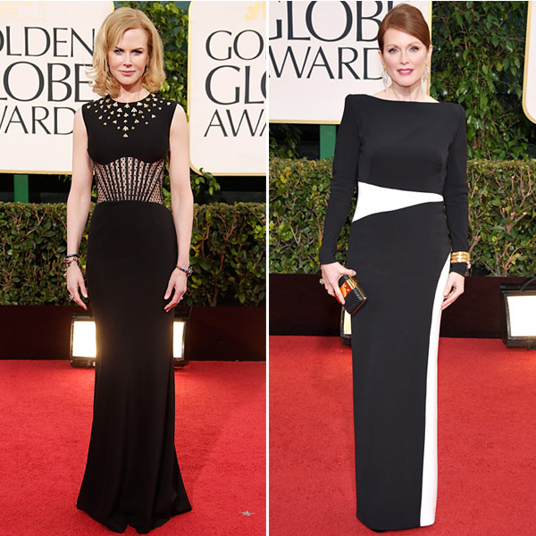 Black was a big trend on the Golden Globes red carpet (then again, isn’t it always?), but these two ladies really stunned: Nicole Kidman looking better than ever in Alexander McQueen (love her relaxed waves, too) and Julianne Moore in black-and-white Tom Ford. What do you think?