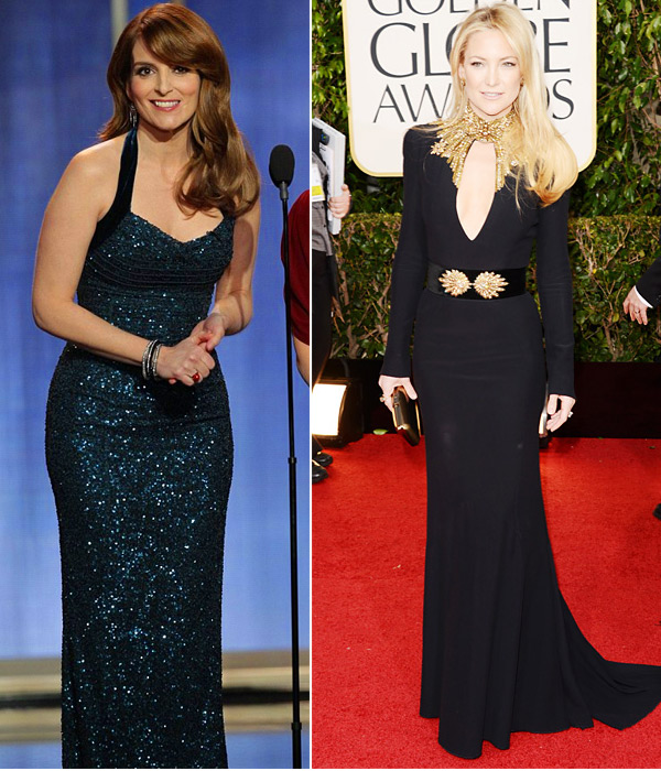 One of my favorite moments of the night was seeing Tina Fey walk out on stage to kick off the night’s festivities. She has never looked better and I hope she keeps up looks like this on the red carpet. Va va voom, Tina! It was also fun to see Kate Hudson in this black Alexander McQueen dress with gold accents.