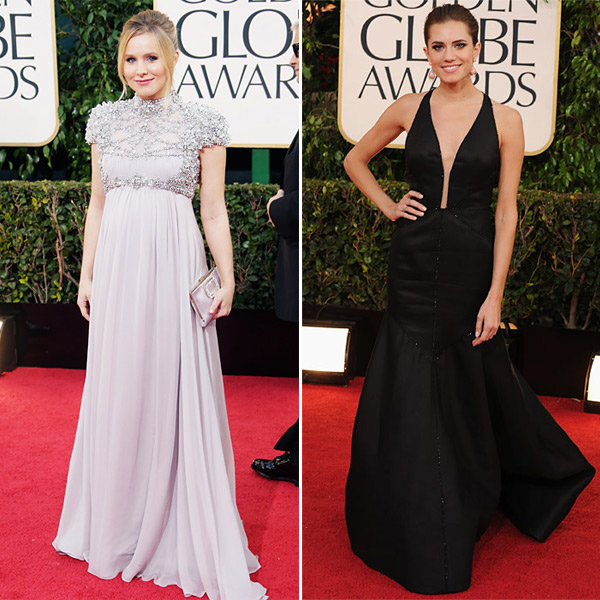 Finally, mom-to-be Kristen Bell’s sweet vintage-inspired Jenny Packham really charmed, while Girls star Allison Williams looked beautiful in black, with just the perfect pop of peach on her lobes.
