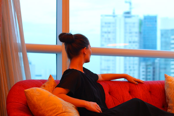 I lazed about taking in the sights from above, watching the people below move hurriedly under their umbrellas, napping occasionally and indulging in room service.